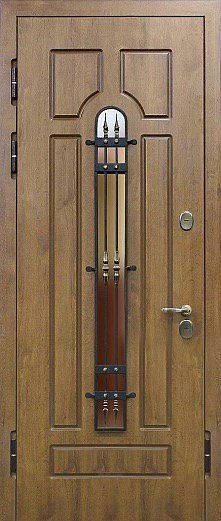 Красивый внешний вид немаловажное, но не самое главное преимущество металлических дверей с элементами ковки. Такие двери еще и очень надежны. Они изготавливаются из холоднокатаной стали толщиной 1,4-2 мм, отделываются массивом, корабельной фанерой, натуральным шпоном или МДФ-панелями, покрытыми виноритом. Установив на нее замки 3 или 4 класса взломостойкости, вы получите дверь, вскрыть которую с помощью грубой силы практически невозможно.