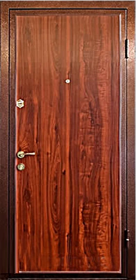 Ламинат - это доска из ДВП толщиной 4-5 мм с четырехслойным покрытием. Визуально он не отличается от натуральной древесины. Рисунок ламинированной доски может быть гладким и имитировать древесный спил или рельефным, имитирующим структуру дерева. Разнообразная цветовая гамма этого материала позволяет изготовить дверь, которая будет отлично смотреться в интерьере как квартиры, так и офиса.