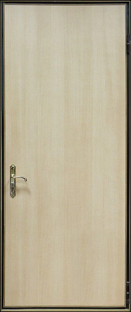 Ламинированные с внутренней стороны двери снаружи можно отделать любым способом - от экономичной винилискожи до премиального массива или натурального шпона, декорированную зеркальными вставками, витражом, кованными элементами.