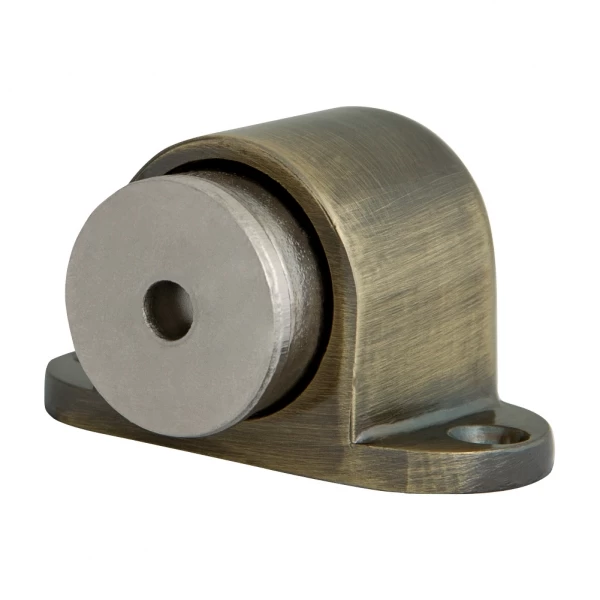 Магнитный дверной упор ТМ Punto серии DSM-52 - позволяет удерживать дверь в открытом положении и защищает дверное полотно и покрытие стен от повреждений. Упор состоит из двух элементов: магнитного стопора, который крепится к поверхности пола/стены и ответной части, крепящейся непосредственно на дверное полотно. Ответная часть примагничивается к упору, обеспечивая прочную фиксацию и исключает самопроизвольное закрывание двери. Дверной упор изготовлены из материала ZAMAK. Гальваническое покрытие соответствует высшему классу устойчивости к коррозии в соляном тумане (более 72 часов). Цвет: зеленая бронза. Гарантия 1 год.