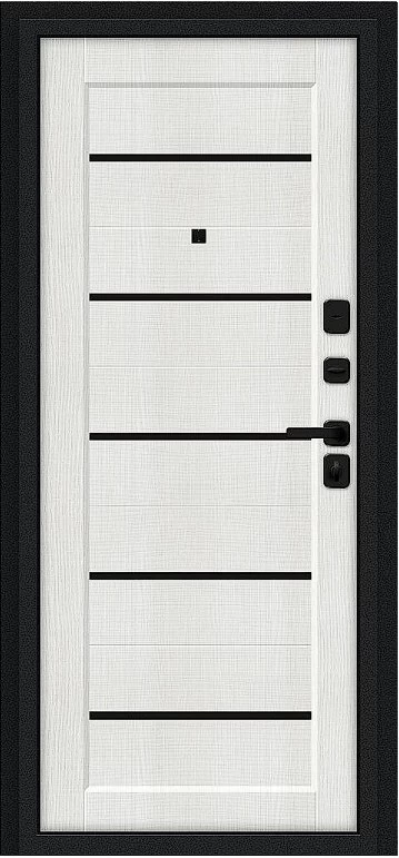 Надежная входная Дверь Браво Борн/SBlack Букле черное/Bianco Melinga премиум класса по цене 31 547 руб. Большая толщина стали защитит от проникновения в ваш дом, квартиру или коттедж. Используется очень качественная фурнитура: замки, цилиндры, ручки, защелки. Покрытие и отделка двери изготовлено под внимательным контролем производителя. Дверь имеет долгий срок службы и гарантию.