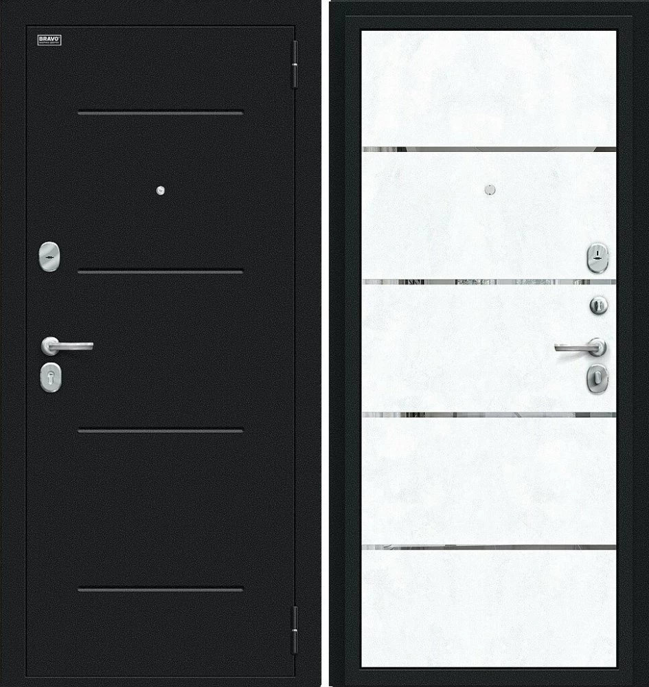 Надежная входная Дверь Браво Лайн Букле черное/Snow Art премиум класса по цене 30 117 руб. Большая толщина стали защитит от проникновения в ваш дом, квартиру или коттедж. Используется очень качественная фурнитура: замки, цилиндры, ручки, защелки. Покрытие и отделка двери изготовлено под внимательным контролем производителя. Дверь имеет долгий срок службы и гарантию.