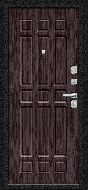 Надежная входная Дверь Браво Мило МФ/BChrome Букле черное/Букле черное/Wenge Melinga премиум класса по цене 31 747 руб. Большая толщина стали защитит от проникновения в ваш дом, квартиру или коттедж. Используется очень качественная фурнитура: замки, цилиндры, ручки, защелки. Покрытие и отделка двери изготовлено под внимательным контролем производителя. Дверь имеет долгий срок службы и гарантию.