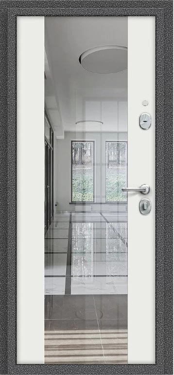 Надежная входная Дверь Браво Север-7 Антик Серебряный/Белый Зеркало премиум класса по цене 31 547 руб. Большая толщина стали защитит от проникновения в ваш дом, квартиру или коттедж. Используется очень качественная фурнитура: замки, цилиндры, ручки, защелки. Покрытие и отделка двери изготовлено под внимательным контролем производителя. Дверь имеет долгий срок службы и гарантию.