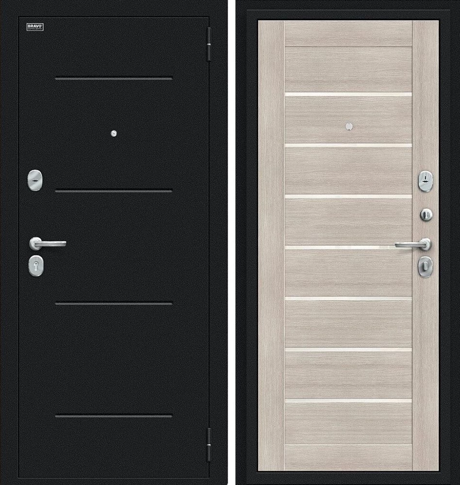 Надежная входная Дверь Браво Техно Букле черное/Cappuccino Veralinga премиум класса по цене 31 397 руб. Большая толщина стали защитит от проникновения в ваш дом, квартиру или коттедж. Используется очень качественная фурнитура: замки, цилиндры, ручки, защелки. Покрытие и отделка двери изготовлено под внимательным контролем производителя. Дверь имеет долгий срок службы и гарантию.