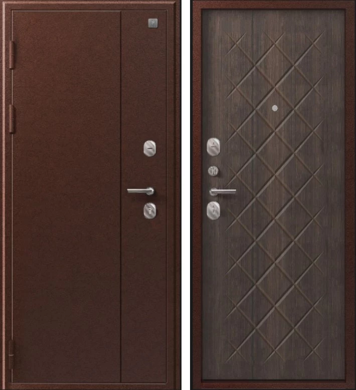 Надежная входная Дверь V-02 медь антик - венге премиум класса по цене 36 897 руб. Большая толщина стали защитит от проникновения в ваш дом, квартиру или коттедж. Используется очень качественная фурнитура: замки, цилиндры, ручки, защелки. Покрытие и отделка двери изготовлено под внимательным контролем производителя. Дверь имеет долгий срок службы и гарантию.